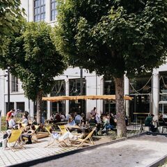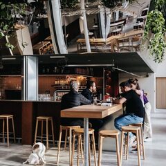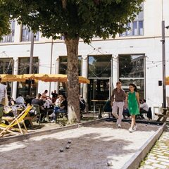 On site, guests can enjoy a locavore restaurant and lively bar, both open to the public, with a regular events program including DJ sets, craft markets, talks, drag shows, and more. The large, plant-filled terrace complete with parasols and a pétanque court is a popular social spot, perfect for relaxing with a drink or homemade brunch.