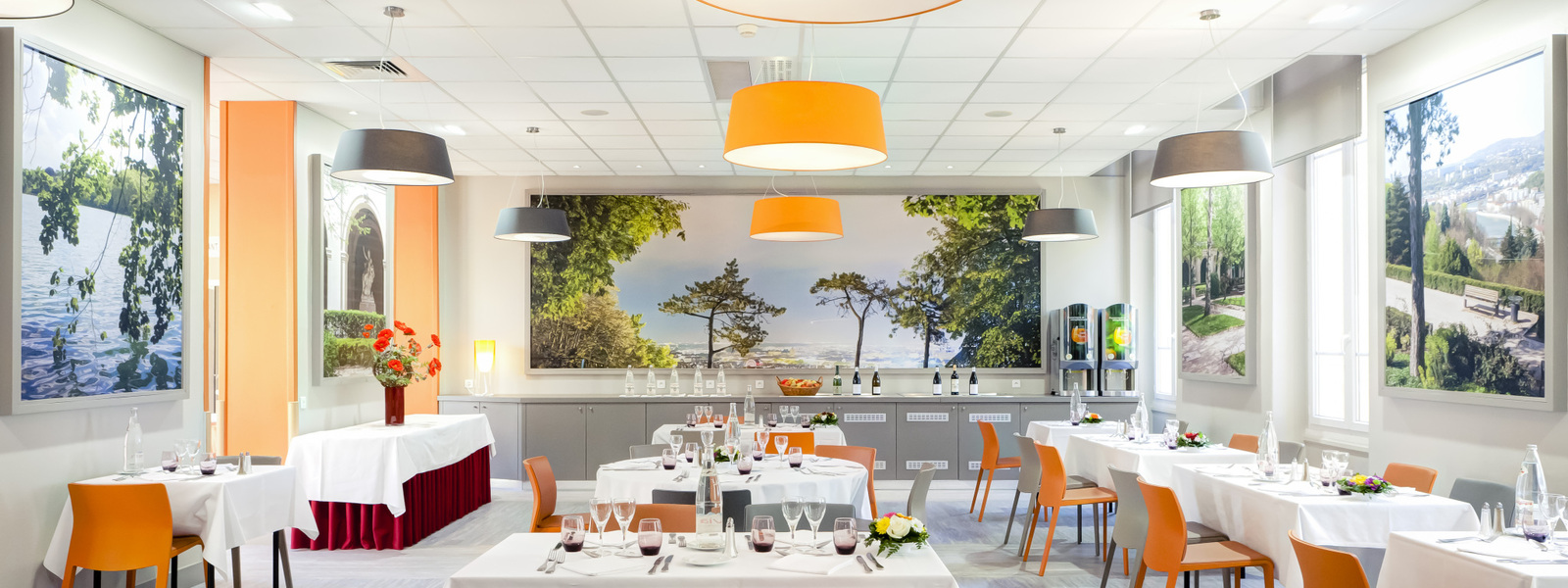 Au Domaine Lyon Saint Joseph, les différentes salles à manger ouvertes sur la nature et sa tranquilité sont le cadre idéal de tous vos déjeuners et dîners, même privés et professionnels.