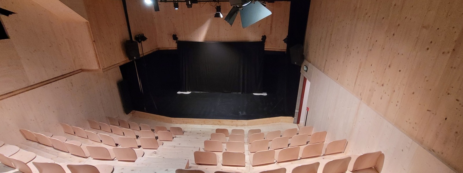 Salle en amphithéâtre sur le théâtre flottant, à l’architecture atypique bois, entièrement équipée son, lumière, vidéo, WIFI et pouvant accueillir 80 personnes avec une scène de 24 m2. Location clé en main, espace, équipements et 1 technicien inclus.